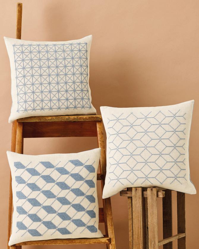 Broderi Kit - 1 kit som har 3 designmuligheder. Indholder materialer til 1 pude - du vælger selv modellen blandt de 3 viste.
